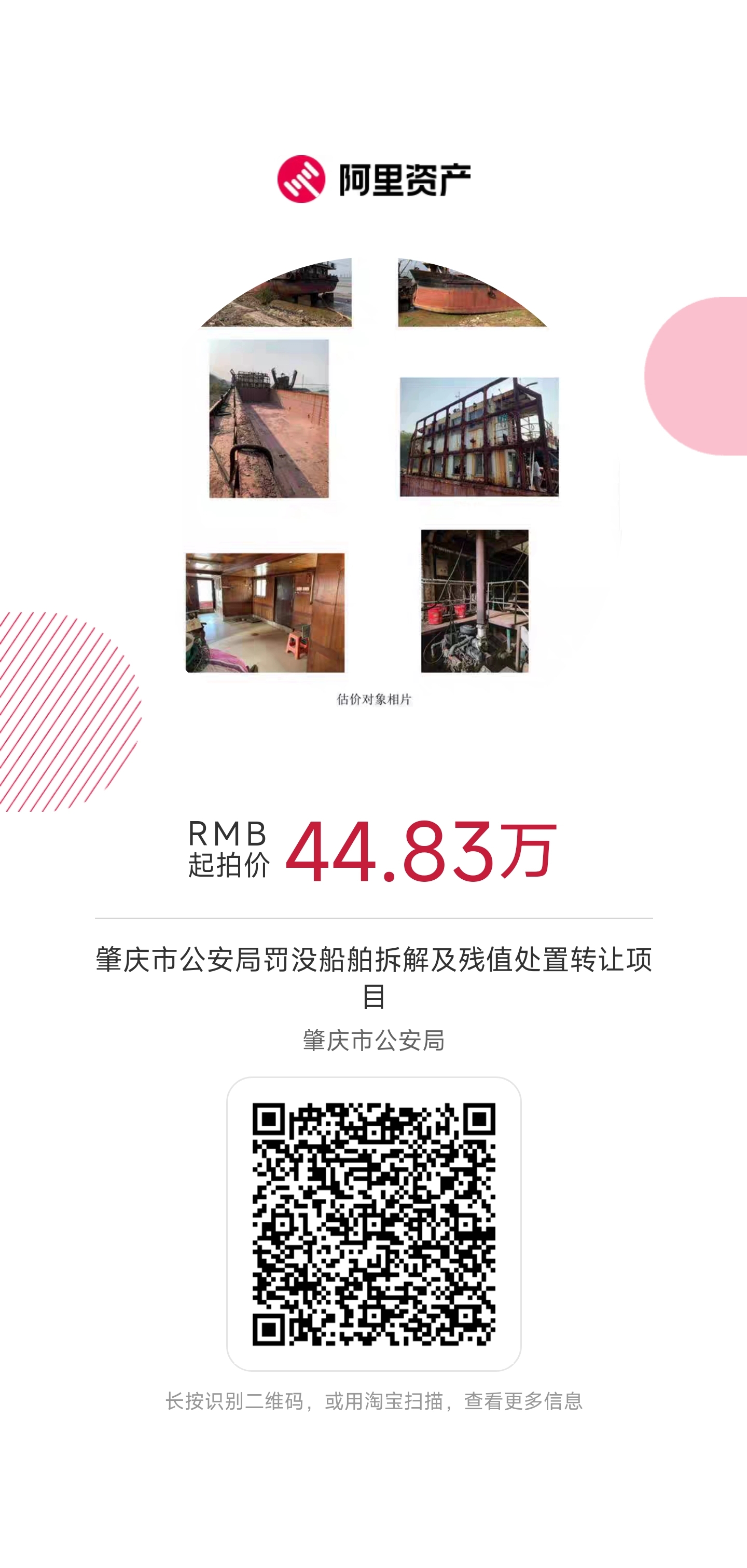 標的物:肇慶市公安局罰沒(méi)船舶拆解及殘值處置轉讓項目。